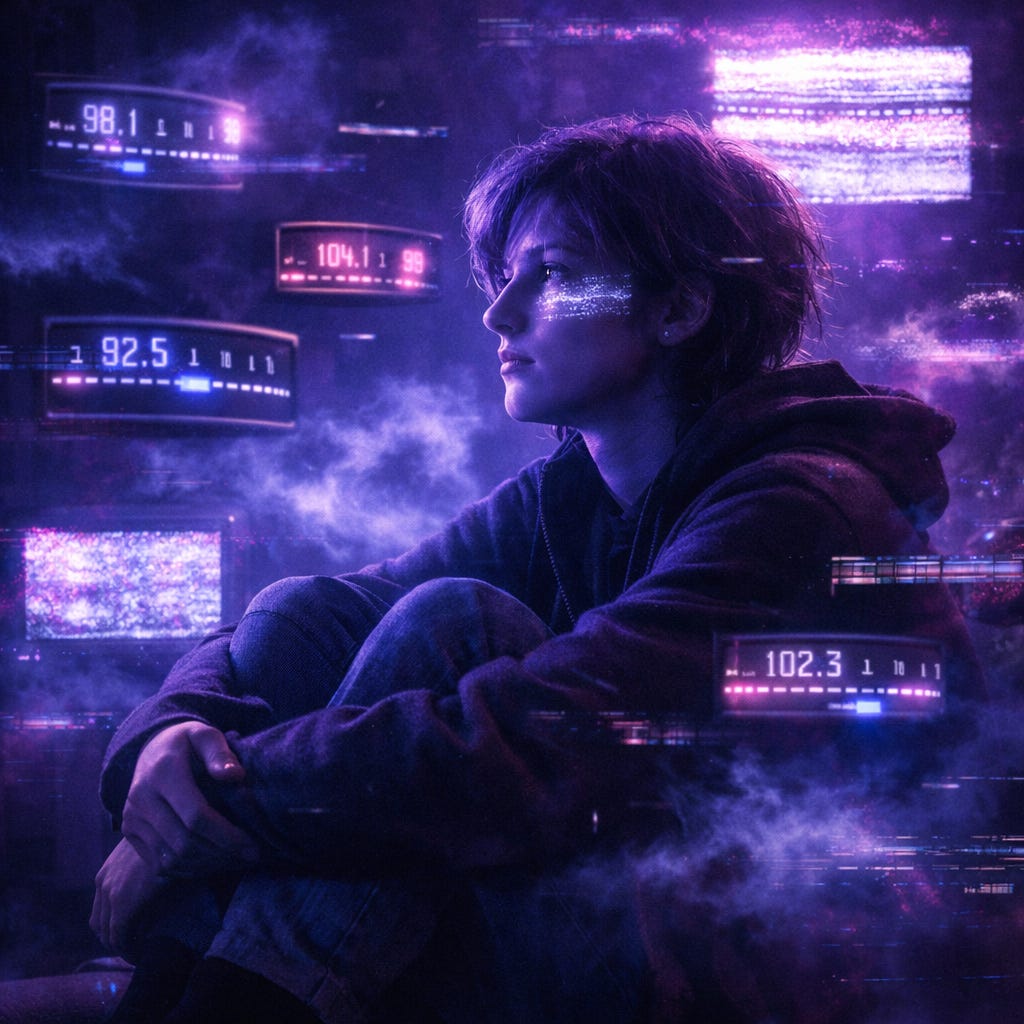 like a radio stuck between stations,